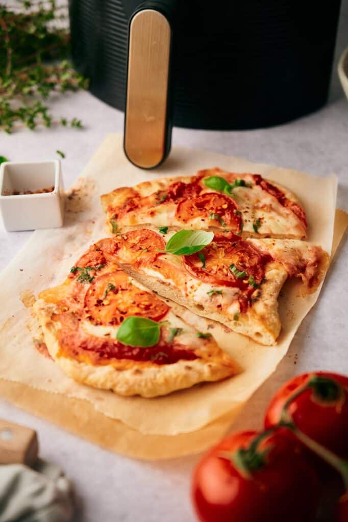 pizza in the air fryer is very quick; you’ll have it cooked in 5 minutes. - All the ingredients are 100% vegetarian.