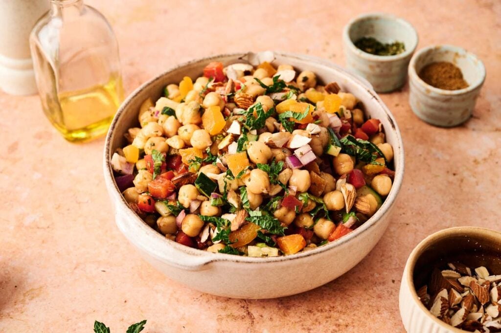 One bowl of this Moroccan-inspired Chickpea Salad and you’ll understand why it disappears every single time I bring it out. Tender chickpeas, crisp vegetables, sweet dried apricots, crunchy toasted almonds, and fresh herbs, all tossed in a warmly spiced lemon and olive oil dressing that’s full of flavor. Bold, fresh, and honestly it just keeps getting better.