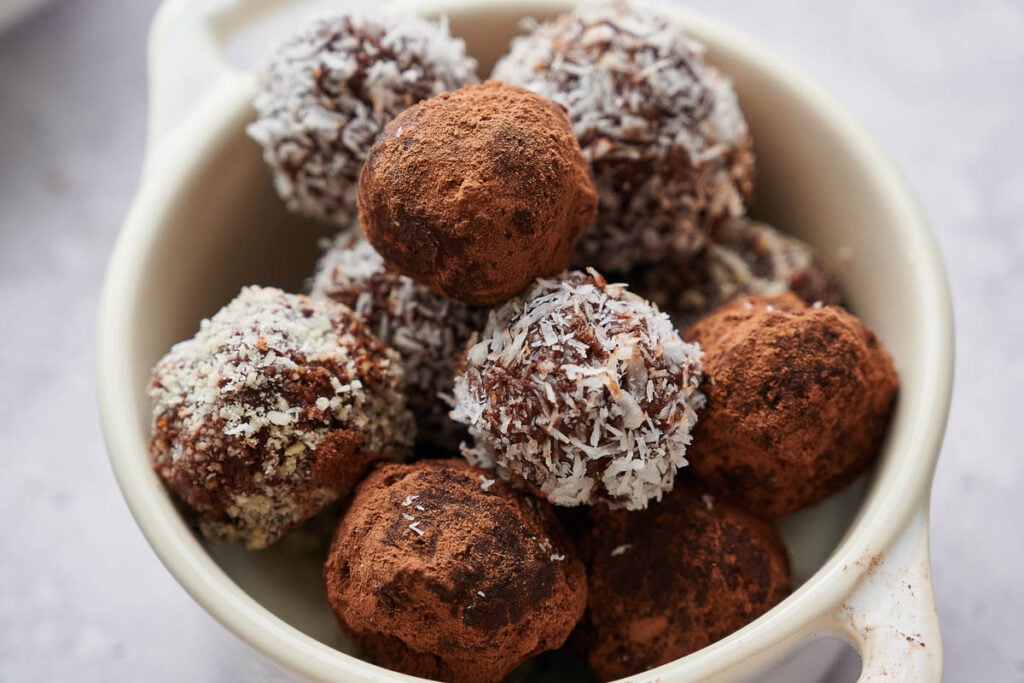 Chocolate Truffles are my go-to when I want to end a meal with something sweet. The ganache center is dense and fudgy with deep chocolate flavor, coated in cocoa powder or shredded coconut. Every bite is rich and chocolatey, and you’ll be shocked at how something this impressive comes together so easily.