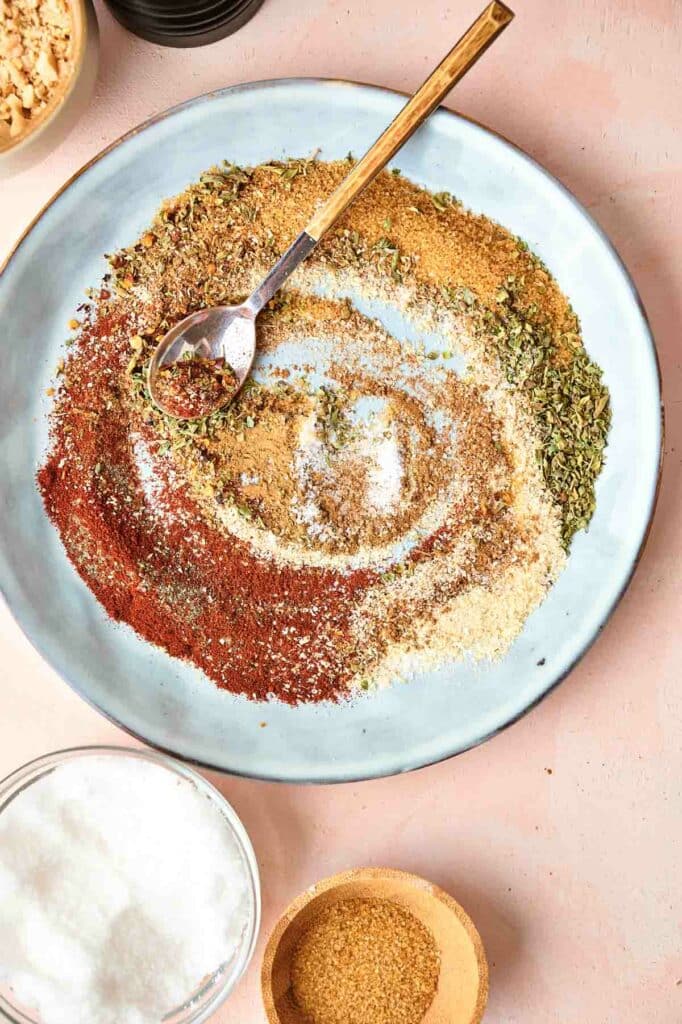 Grab a bowl and mix all the spices together until everything is evenly blended. This is your chance to play around and get those spices perfectly intermingled.