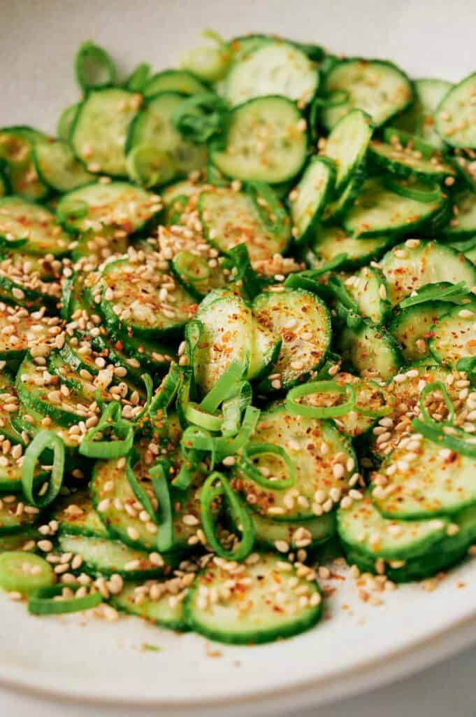 - This is such an easy recipe to throw together. All you have to do is toss thin slices of cucumber with salt and let it drain. Mix the other ingredients together, coat the cucumber, and voila! Dig in!