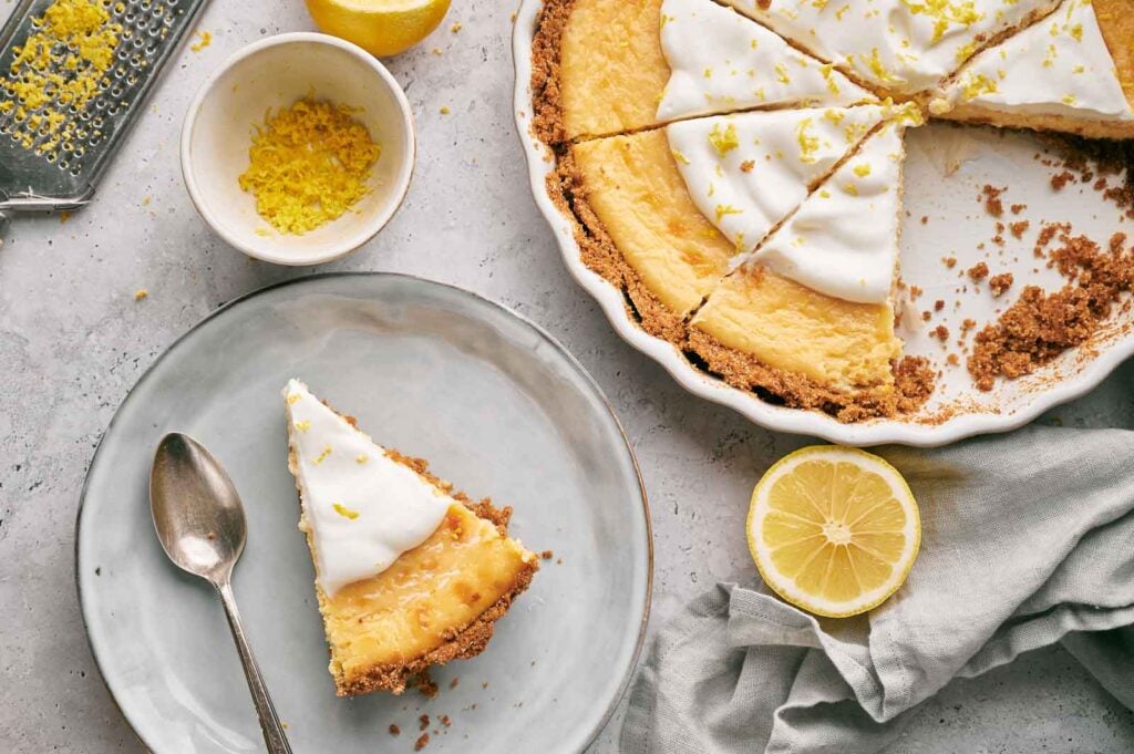 For a fuller dessert spread, serve it alongside fresh seasonal fruit like strawberries, blueberries, or raspberries, which complement the citrus notes without competing with them. Together, they make the perfect summer dessert spread for any outdoor gathering. Coconut cream pie also helps balance the brightness with its tropical sweetness.