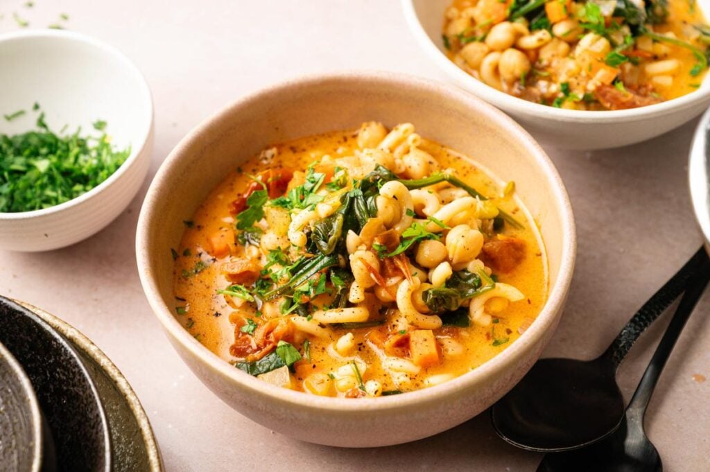 I’ve made Marry Me Chickpea Soup more times than I can count because that creamy sun-dried tomato broth is absolutely addictive. It coats every chickpea and pasta in deep, savory flavor while spinach wilts into silky ribbons. The cream adds just enough richness without weighing you down, making every spoonful so good you’ll crave it constantly.